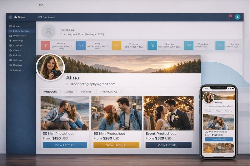 We only get paid once you do, after the booking is complete. A simple service fee covers everything: clients, editing, delivery, and support.